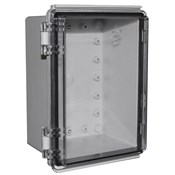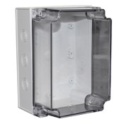 IP67 Polycarbonate enclosure with a clear lid featuring large heavy duty corners for added robustness. The ideal enclosure for tough environments such as control panel enclosures and industrial enclosures 190x190x130