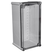 IP67 Polycarbonate enclosure with a clear lid featuring large heavy duty corners for added robustness. The mechanically strong enclosure provides the opportune environment for heavy duty IIoT enclosures 380x190x130