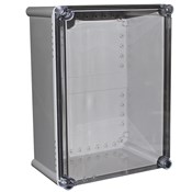 IP67 enclosure polycarbonate with a clear lid featuring a hinged lid with latches. High power electrical system enclosures make perfect use of the X8 enclosure due to it hinged door and heavy duty capability 350x250x180